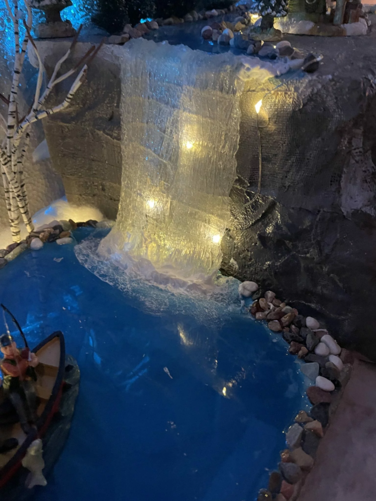 Place a waterfall on your DIY Miniature Snow Village outskirts.