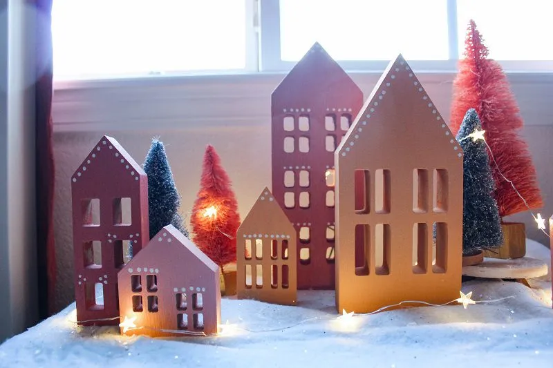- Add artificial trees in between the houses to give certain dimensions to your snow village.